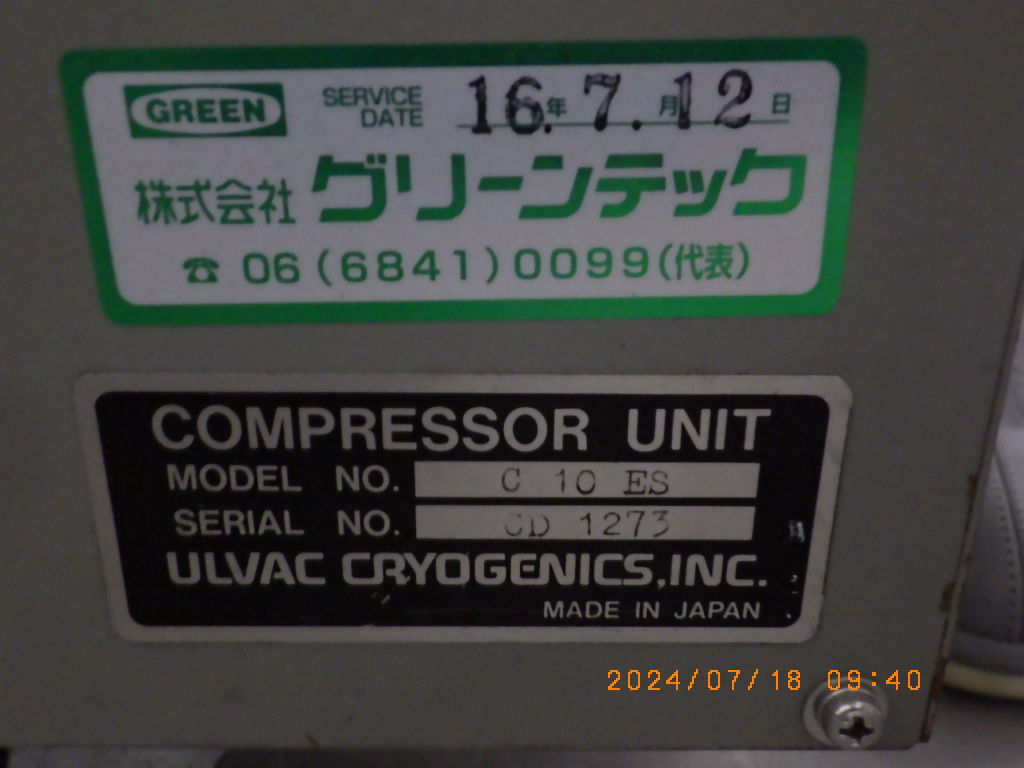 商品ジャンル > 真空ポンプ > クライオコンプレッサー