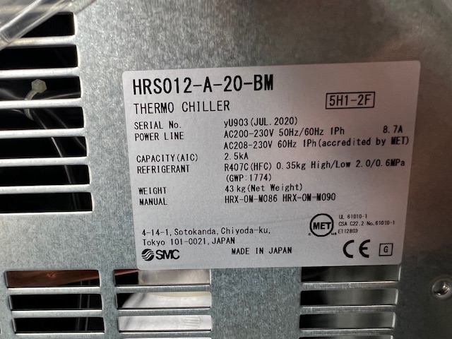 商品ジャンル > 加熱機、冷却機 > チラー 中古 チラー HRS012-A-20-BM 機器名|HRS012-A-20-BM 機器コード|HRS012-A-20-BM 機器の詳細| 未使用品 メーカー名| Smc 在庫状態 : 在庫有り|在庫数:1 販売価格 ¥180,000 ¥180,000 数量